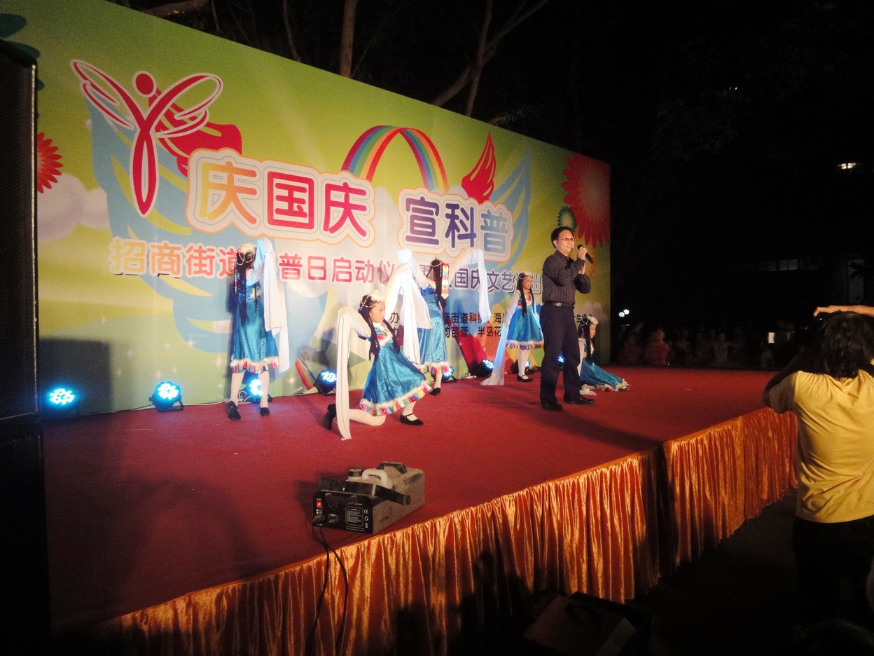 为答谢广大业主/住户对半岛花园管理处工作的支持与配合,增进管理处与业主/住户之间的交流与沟通,深圳市泰源物业管理有限公司半岛花园A区管理处特选定在国庆节来临之际的9月26日晚上19点00分举行庆国庆宣科普社区文化活动,诚邀招商街道办、海月工作站、计生协会、天韵芭蕾共同参加了2011年度泰源物业 “庆国庆宣科普” 主题社区文化活动。