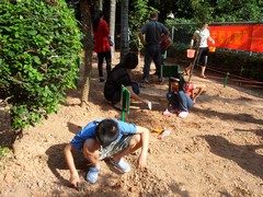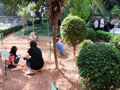 此次活动主要以家庭为单位,通过抽签的方式在规划好的空地上选择家庭小农场。看,他们有的平整土地、有的播花种、有的种树,如同一个现实版的QQ农场。