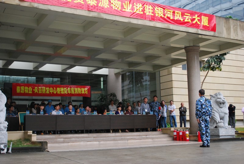 | 为全面贯彻落实《中华人民共和国消防法》“预防为主、防火结合”的工作方针,为提高风云大厦各公司员工的安全、防火意识以及自防、自救能力,公司特举行了风云管理处2011年度消防演习。 | |